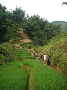 Se trata de mujeres de la minoría Hmong (o "hamón" como diría El Cordobés) que, aparte de ocuparse de los hijos, cocinar, hacer la casa, trabajar en el campo, ... sacan tiempo para acompañar a los turistas durante TODO el recorrido (el nuestro duró 6 horas 6) . Después, se van a sus pueblos (algunos situados a unas 2 ó 3 horas andando de Sa Pa)... como si nada!